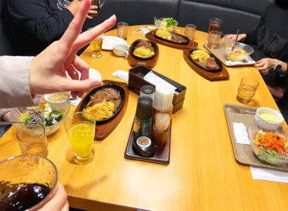 気がつけば、もう2025年のヘビ年も終わりに近づいてきましたね。皆さまはどのような一年をお過ごしでしたか?私は育休が中心だったため、例年ほど時間の流れを早く感じませんでした。仕事をしていると一年があっという間なのに、不思議なものですね。さて、弊社の制作チームではこれから繁忙期が始まります。その忙しい時期に向けてパワーを蓄えよう!ということで、「OTOGAWAお帰り&繁忙期頑張ろう会」が開催され、私も参加してきました。本日はその様子を少しご紹介したいと思います。会場は会社の近くにある、アットホームなステーキレストラン「ステーキ宮」。忘年会シーズンだと居酒屋に行きがちですが、あえて“レストラン”を選んでもらえるのは個人的にとても嬉しいポイントです。それぞれが食べたいメニューを自由に注文し、私はサラダバー・スープバー・ドリンクバーを付けてカットステーキをいただきました。久しぶりのステーキ肉は、噛むたびに美味しさが広がって幸せな気持ちに…!宮のタレは相変わらず美味しいですね!!食事を楽しみながら、映画の話やペットの話など会話も大盛り上がり。最近はなかなか集まる機会が減っていた中で、こうして同じ時間を共有できたことが本当に貴重で、温かい会になりました。「このメンバーで今年の繁忙期も乗り越えよう!」という気持ちが自然と高まりました!