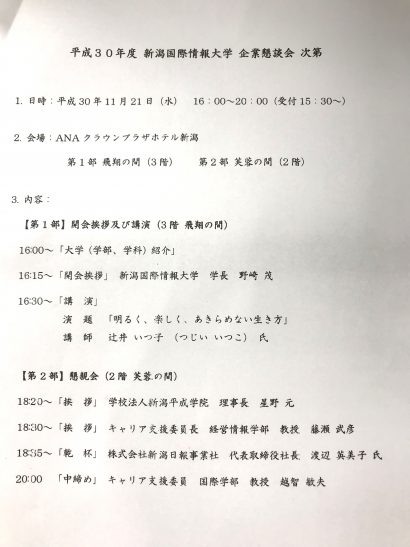 私が卒業した母校である『新潟国際情報大学』主催の企業懇談会に