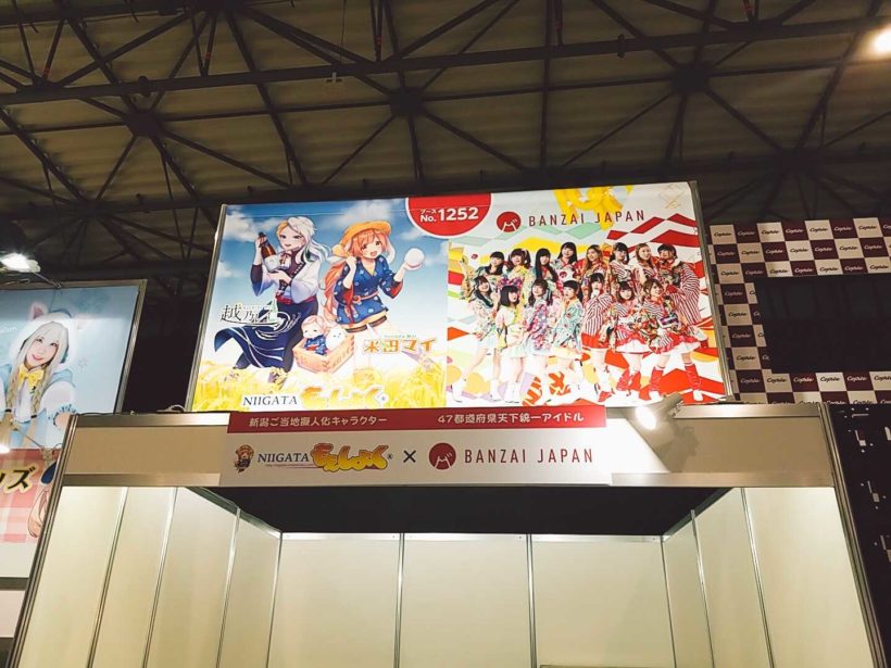 今回はアイドルグループ『BANZAI JAPAN』さんとの合同出展でした。ブースには長テーブル等の備品以外からっぽでしたが、これだけでもうにぎやか…(笑)