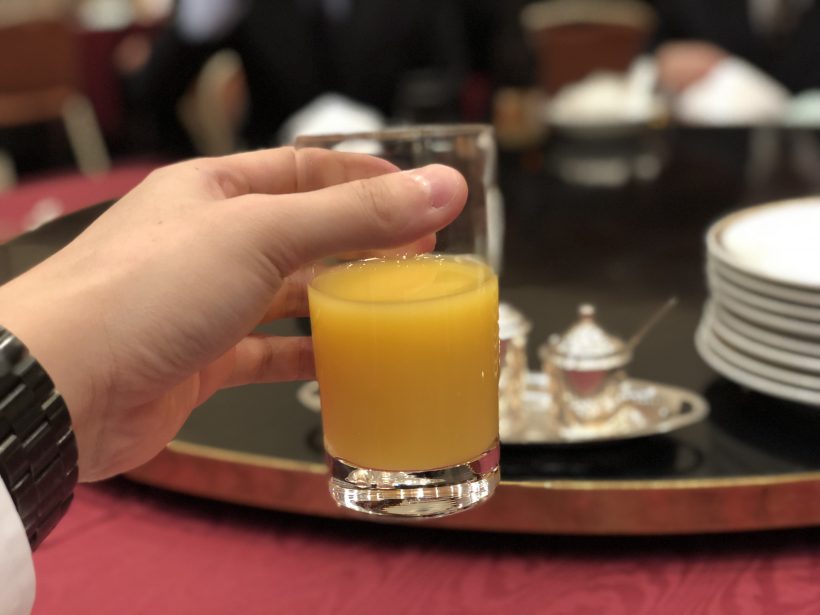 私はお酒飲めないのでオレンジジュースで乾杯